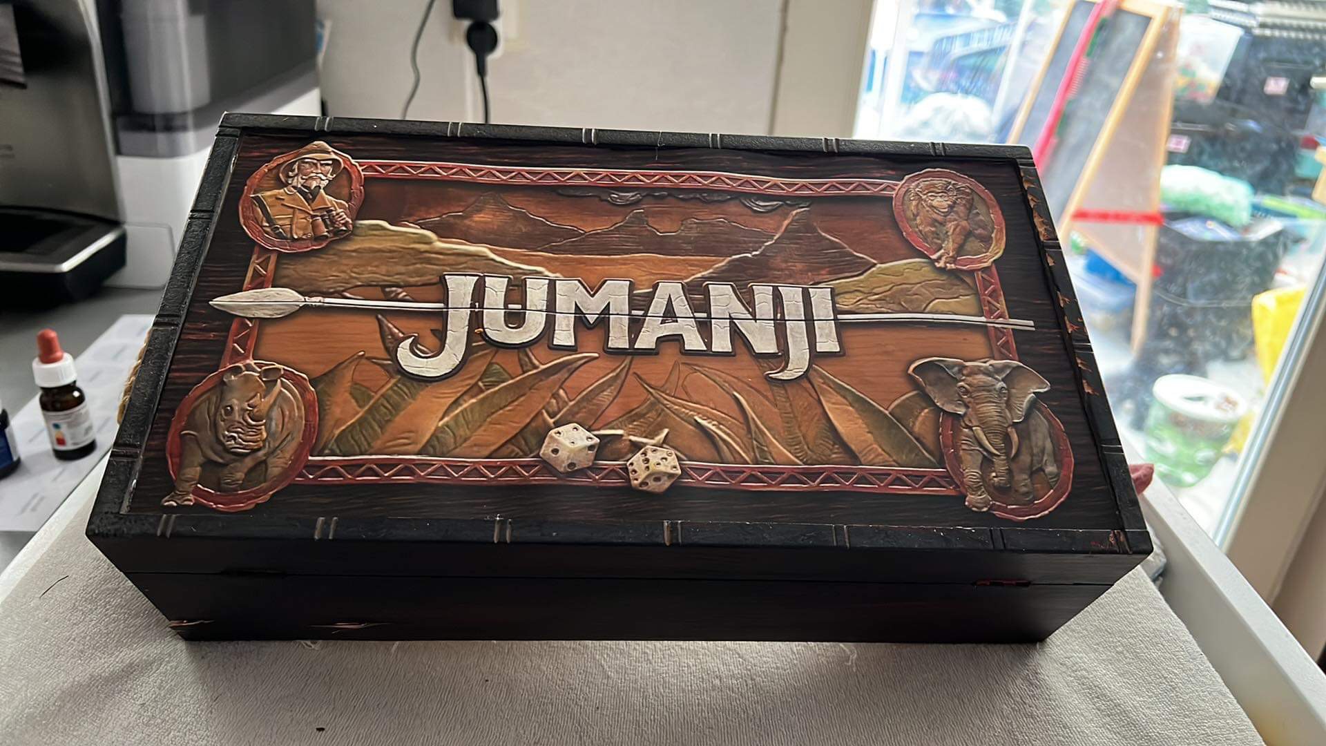 Wijnkistje met Jumanji spelbord label